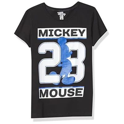 Disney Characters Mickey Shadow Date Girl's Solid Crew Tee, black, X Small, XS