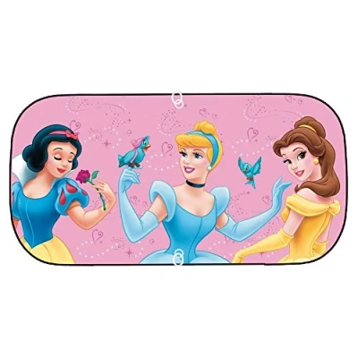 Package dimensions: 25.4 L x 2.0 H x 27.4 W (cm) Sun protection for car is attached with suction cup mounts, universal, motif: Disney - three princesses: Cinderella, Belle, Snow White