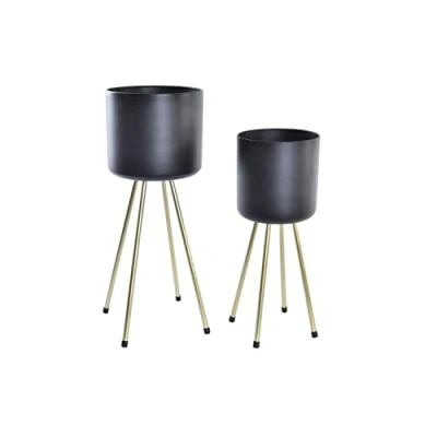 DKD Home Decor Flower Pot Set Color: black and gold Material: Metal Measurements: 48 x 47 x 25 centimeters The fun for the summer is assured with these proposals that young and old will like
