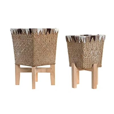 DKD Home Decor Flower Pot Set Color: Multicolored Material: wood and fiber Measurements: 22 x 22 x 35 centimeters The fun for the summer is assured with these proposals that young and old will like