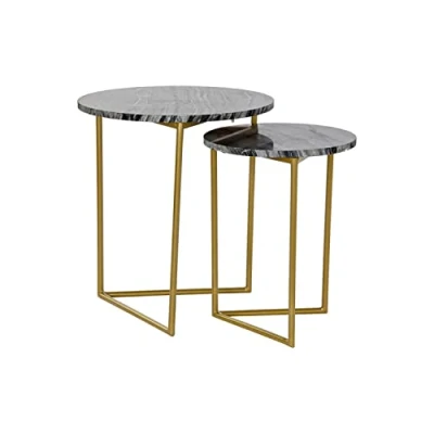 DKD Home Decor Set of 2 Coffee Tables, Metal, Black/White, Estándar