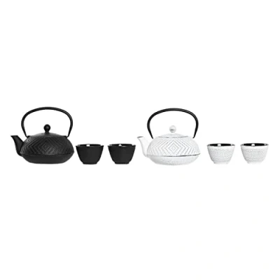 DKD Home Decor Teapot Set Color: White and Black Material: cast iron and stainless steel Measurements: 23 x 41 x 31 centimeters If you like to take care of every detail of your home and be up to date in products that will make your life easier