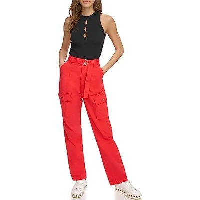 DKNY Women's Belted Cargo Pants, Mars Red, 10