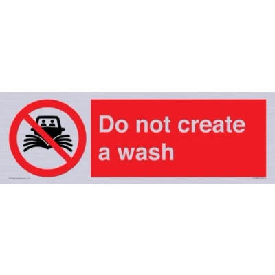 P507 : Do not create wash / no speeding of watercraft This sign is made from vinyl silver sticker 41 landscape Sign Text: Do not create a wash