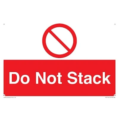 P001 : General Prohibition This sign is made from vinyl high tack A stickier sticker. Uses a stronger adhesive to make it more suitable for plastic surfaces like Wheelie Bins or where the sticker might get rubbed. A4 landscape Sign Text: Do Not Stack