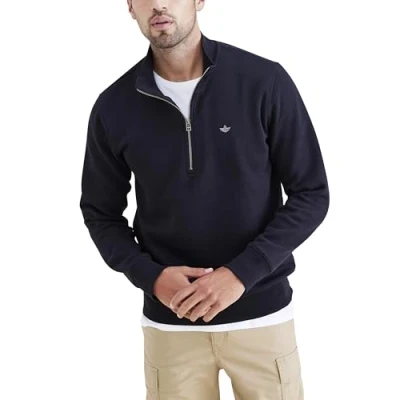 Dockers Quarter Zip Fleece Sweatshirt Beautiful Black A4165-0005 Machine Wash Cold, Do Not Bleach, Tumble Dry Low, Warm Iron If Needed, Dry Cleaning Possible, Wash Inside Out With Like Colors