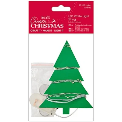 USE Brighten up any craft project this season with these decorative white LED string lights. Ideal for Christmas table decoration, bedroom, wedding, Christmas party, birthday, Halloween and more. Add twinkly decoration to your home decor CONTENTS This pack contains 20 white LED lights on 1m of string, with attached battery pack and batteries, moldable wire for any craft creation. Battery powered LED fairy lights will make your Christmas crafts and projects twinkle DIY CRAFTS String fairy lights are great for a variety of craft creations including Christmas card making, scrapbooking, mini light Christmas tree decoration, Christmas garland, or put lights into mason jar or glass bottle and create a festive scene CREATIVITY There is nothing better than the build up to the most wonderful time of the year. Get truly festive with Christmas crafting. Ideal for adults and kids xmas crafts. Indoor lights for decorations, curtain, cork bottle kitchen and more RANGE Designed with the festive season firmly in mind, Create Christmas is an assorted best-selling range of everything you could possibly need for seasonal Christmas crafting. Fantastic value and amazing art and craft, quality products
