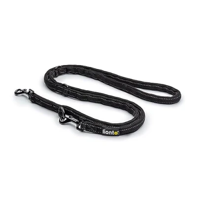 𝗠𝗨𝗟𝗧𝗜-𝗔𝗗𝗝𝗨𝗦𝗧𝗔𝗕𝗟𝗘. This dog lead is 3-way adjustable and therefore offers the option of keeping the dog short, medium-length or long. You can react quickly and adjust the length of the lead at any time in a wide variety of situations. 𝗩𝗘𝗥𝗦𝗔𝗧𝗜𝗟𝗘 𝗜𝗡 𝗨𝗦𝗘. Thanks to its easy adjustability, you can also use the lead as a shoulder lead for sporting activities or as a double lead for 2 dogs. 𝗥𝗢𝗕𝗨𝗦𝗧 𝗠𝗔𝗧𝗘𝗥𝗜𝗔𝗟𝗦. We use 2 rustproof stainless steel carabiners with a 360° rotating joint to make this coupling lead from hard-wearing and weatherproof nylon. 𝗦𝗔𝗙𝗘𝗟𝗬 𝗘𝗩𝗘𝗡 𝗜𝗡 𝗧𝗛𝗘 𝗘𝗩𝗘𝗡𝗜𝗡𝗚. The reflective stripes along the entire length of the training lead make your dog recognisable when out and about, even in the dark. 𝗗𝗔𝗧𝗔. This adjustable multifunctional lead with reflective strips is available in a length of 200 cm and in the colour black.