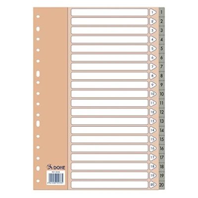 Separators for file cabinets and ring folders Made of 120 micron polypropylene with 16-hole multi-drill Served in individual self-adhesive bag