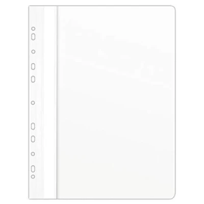 File folders made of durable PVC, hard - pack of 10 11 holes for attaching to the folder (11-hole punched (Euro holes)) Transparent front, hard crystal clear cover sheet - PP thickness: 150 µm Coloured back - Thickness: 160 µm Holds approx. 200 sheets (2 cm) for A4. Clip-on folder, metal hook-in folder. Interchangeable, double-sided edging tape. Plastic file folder model 1704001PL-09 Donau, dimensions: 235 x 310 mm, A4, colour: white. Perfect for office and school