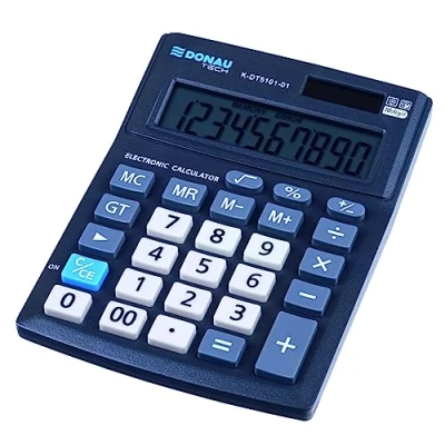 Desktop calculator K-DT5101-01 DONAU TECH OFFICE, with 10-digit display with solar and battery operation - compact design - high-quality workmanship - 5 year warranty These calculators feature large buttons and a single-line display. These devices are inexpensive and make office work much easier Calculator: Large LCD display - The large buttons and convenient for note With square root function and calculation of percentages Double Zero Total GT Data Storage Size: 137 x 101 x 30 mm, Colour: Black. Fixed tilt angle. Automatic shutdown With the Donau Tech brand, you will receive premium products that combine tradition with modern design as well as value for money with high quality and a 5-year warranty