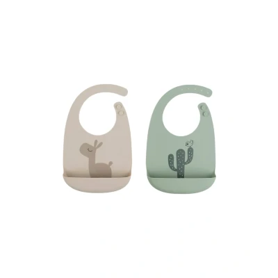 PREMIUM SILICONE: safe, durable and easy to wipe or wash LARGE FOOD BAG: catches spills and fallen bites ADJUSTABLE NECK CLOSURE: Fits babies and toddlers comfortably Waterproof and stain resistant: ideal for messy meals Cute designs: cute deer and cacti prints in sand and green tones