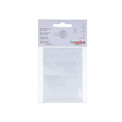 Transparent double-sided flexible rubber adhesive dots for individual application. Flat Clean application without touching the adhesive with your fingers. Strong fixation on complex surfaces. Ideal for applying on buttons, flowers, etc. and give a sophisticated touch in your scrapbooking work., Manufacturer: INNSPIRO
