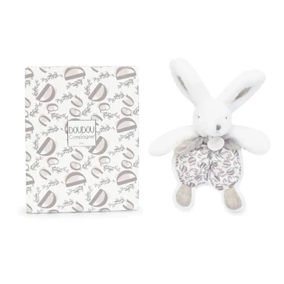 Cuddly Rabbit 18 cm: This white rabbit cuddly toy from Doudou et Compagnie is made from a ruffled fabric in powder colours, with a scarf around the neck and long, manipulable paws and stimulates toddlers' fine motor skills Small format 18 cm, easy to handle: this white rabbit sofa is lightly padded and offers a soft and soothing texture that soothes the baby while providing them with a soothing presence during the day and at night for moments of peace VARIOUS COLORS TO CHOOSE FROM This white cuddly toy with a colorful scarf features pastel tones and a print with its stitched pom pom with the word cuddly toy. This companion becomes a sensory and visual landmark to accompany the baby in its development GIFT BOX FOR GIFTING Comes in a reusable gift box. This plush toy rabbit is ready to give as a gift and can also be used to store baby's memories. A practical box for marking early childhood events in an elegant way Insured cuddly toy: This cuddly toy rabbit is covered by the Doudou et Compagnie cuddly toy. An initiative that ensures the availability of this model to find the cuddly toy if lost and maintain emotional continuity with the child, thanks to its optimal number, the cuddly toy is quickly found, Manufacturer: Doudou et Compagnie