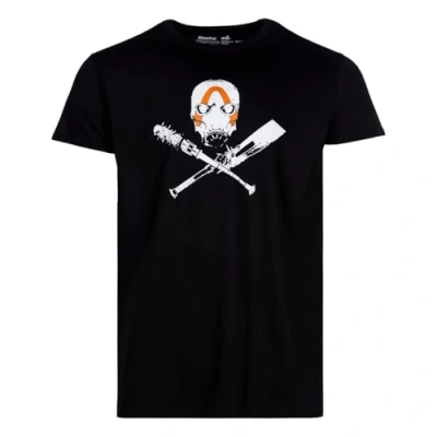 This black small t-shirt features the mask and favorite weapons of the crazy psycho bandits from Borderlands Very high quality, 100% preshrunk cotton for long-lasting fit, even after being washed multiple times Care instructions: machine wash at 40°C, do not tumble dry Available in sizes S, M, L, XL, XXL