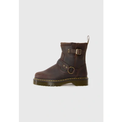 Crazy Horse leather is a muchworn DM's classic and often seen on our most iconic silhouettes. A heavy leather that looks worn and used from the first step and gets better with time. We've redesigned our Mary Jane doublebuckle shoe in Crazy Horse leather and furnished it with brass hardware. Goodyear welted on our robust aircushioned sole and marked with our characteristic yellow welt stitch. Crazy Horse is a heavy leather with a durable, textured appearance designed to look brokenin from the first step. The DM's sole is a pillar of Dr. Martens construction known for its comfort and stability. A twotoned appearance with distinctive grooves and an unmistakable tread pattern. Our Goodyear products are heatsealed and reinforced with our characteristic welt stitch. Sale | Upper material: leather/Lining: imitation leather/ textile/Sole: synthetics/Insole: leather | Sale order at Zalando.ie! Size: 6. Color: Dark brown. Pattern: plain.
