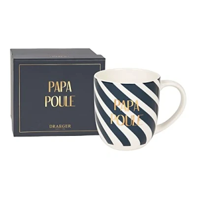 STYLISH MUG FOR COFFEE - Want to drink your favourite drink from a lovely mug? Shop our original ceramic mugs with personalised messages. Capacity: 320 ml, height: 9.5 cm, diameter: 8 cm. Our mugs are dishwasher safe but not microwave safe. Chic and trendy design: in blue or pink, our mugs are illustrated with geometric lines and shapes for a very graphic look. The chic detail? The message is written in hot gold. Each mug will become a beautiful decorative element wherever you put it. TRENDY MESSAGES: Are you looking for a gift for your dad? We've got you covered: a cool dad mug or dad hen. You can choose the message that looks like it most A very beautiful gift: for Father's Day or as a Christmas gift, give your dad one of these mugs. A little attention that will surely appeal to her. Each of our mugs comes in a beautifully crafted gift box with a hot gold finish. Enhancing your emotions since 1886: Draeger has written some of the most beautiful iconographic pages of the 20th century, working for large luxury names and collaborating with renowned artists like Dali, Picasso, Cocteau and Matisse. Today, Draeger continues to rely on quality products to deliver happiness and emotions: the beauty of images, elegance of messages, nobility of materials and perfection of design., Weight: 0.8377565956 pounds, Manufacturer: DRAEGER PARIS 1886