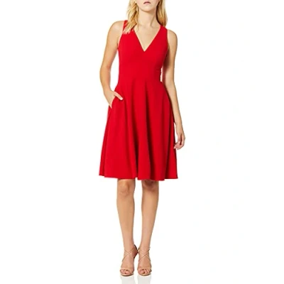 Dress The Population Damen Catalina Midikleid, Ärmellos, Ausgestelltes Kleid, Rouge, L