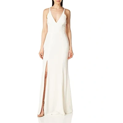 Dress the Population Women's Iris Spaghetti Strap Plunging Long Dress, Off White, Medium