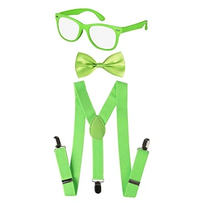 PARTY ENHANCER - Dress up in this cool set! It will surely enhance your party?s spirit. The fun neon colors will add Thrill and excitement! Whether it?s Halloween, Birthday Party or a fun filled night, this solid color suspender bowtie and sunglasses set will surely make a statement! MADE WITH YOU IN MIND - Our whimsical cool set is great in more ways than you think! Bowtie and suspenders are adjustable to fit the size of your desire! This will surely enhance your party or event! FAMILY FUN - This neon suspender bowtie and sunglasses set is available for kids and adults in 4 fun and exciting colors! Colors include Green, Orange, Pink and Yellow! GREAT GIFT IDEA! - looking for a cool yet exiting way to surprise your loved one? choose the color of your desire and Invest in this awesome set! Compliments guaranteed! COMMITMENT TO CUSTOMER SATISFACTION - Dress Up America has been providing quality products and excellent service since 2005. If there is ever any issue with your purchase on Amazon, please contact us and we will take care of it right away.