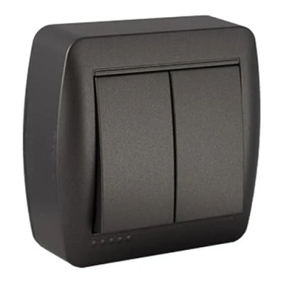 The dual surface switch of the Mural Solera series, in an elegant graphite finish, offers a robust and practical design, ideal for integrating into any environment thanks to its modern aesthetic This double surface switch from the Solera Mural Series in graphite color provides an elegant and modern touch, ideal to complement any room. Its graphite finish not only enhances aesthetics but provides strength and durability. The Solera Mural Series dual surface switch in graphite finish offers a modern and elegant design that integrates seamlessly with contemporary décor. Ideal for controlling two lighting circuits from a single point. The dual surface switch of the Solera Mural series in graphite finish combines design and functionality, ideal for integrating perfectly into modern and elegant environments thanks to its distinctive color. Designed with a modern aesthetic, the Solera Mural Series Graphite Dual Surface Switch combines functionality and style. Its graphite finish brings a sophisticated touch to any interior space.