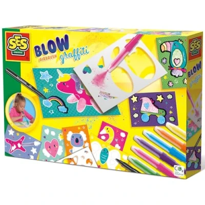 Go wild with SES Creative's Blow Airbrush Graffiti set, perfect for young artists who love street art. Includes 6 coloured blow airbrush pens, a black brush marker, graffiti templates, and instructions. Made from safe, non-toxic materials, suitable for children aged 6 and up. Promotes creativity and fine motor skills as kids create their own graffiti art with blow airbrush pens. Ideal for imaginative play and art projects, keeping kids engaged with vibrant graffiti designs., Manufacturer: SES Creative