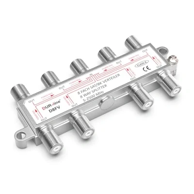 DUR line SAT & BK Splitter 8 Way Fully Shielded Unicable HD Compatible D8FV for Satellite Systems (DVB S2) FM Radio DC Passage TV Antennas Distributor