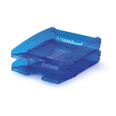 Office filing system in TREND design, With gripping zones for easy sorting of documents and papers Letter trays for formats up to DIN A4 to C4, ideal for the desk, on office cabinets or for exercise books and documents Scope of delivery: Durable 1701626540 TREND Storage trays blue transparent, 6 pieces in a set, dimensions (1 letter tray): 250 x 70 x 337 mm (W x H x D) Stackable A4 tray with variable opening angle Made in Germany, Durable is one of the leading German brand manufacturers of office organisation and presentation equipment