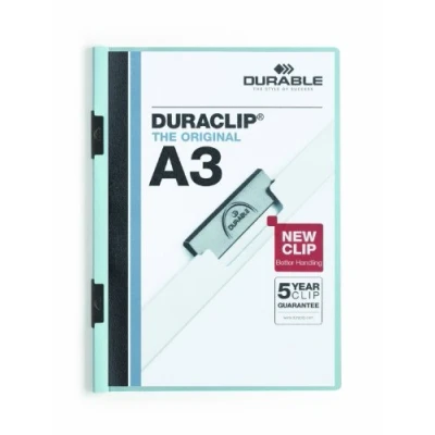 Durable 221806 Clip Folder DuraClip A3, Hard Foil, Up to 60 Sheets Blue, Pack of 10