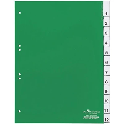Format: A4 portrait full size Number of divisions: 12 Index systems provide a practical solution Available in green colour Measures 215/230 mm width by 297 mm height