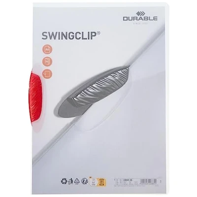 Durable A4 SwingClip Crystal Folder Polypropylene Capacity 30 Sheets, Crimson, Pack of 25