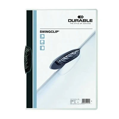 Clamp folder SWINGCLIP with elliptical, laterally swivelling plastic clamp Clip stapler for 1-30 sheets A4 Folder for documents in DIN A4 format, e.g. offers, meeting and training documents Easy handling: swing the clamp outwards, insert papers, close clamp - holds documents securely. Scope of delivery: Durable 226001 SWINGCLIP clip files black, 25 pieces