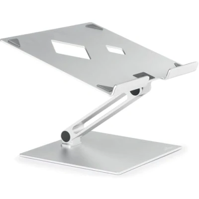UNIVERSAL: Table stand for laptops and notebooks from 10 inches to 17 inches (up to 5 kg) PRACTICAL: Table holder folds up to save space and mobile - large recessed grip for easy opening and closing of the laptop ERGONOMIC: Stepless height and reading angle adjustment, e,g, for use with laptops as a desktop screen ROBUST: 3,5 mm thick aluminium for high stability, improved heat dissipation thanks to ventilation holes and aluminium plate WHATS INCLUDED: Rise laptop stand, includes non-slip rubber pads, Durable is one of the leading German brand manufacturers of office organisation and presentation equipment