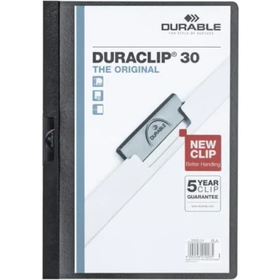 AmazonSECURE: Thanks to the robust and strong metal clip, the folder securely holds unpunched documents in place, making it perfect for important presentations, school and university work, etc, HIGH-QUALITY: The original clip folder from DURABLE is made of strong PVC with a coloured back and a transparent front cover for multi-use LARGE CAPACITY: The steel clip can hold up to 30 A4 sheets of unpunched paper thanks to the clip being able to easily adjust to the amount of paper used, on every use 5 YEAR CLIP GUARANTEE: We are so confident in the the craftmanship of the clip that we offer a 5 year gaurantee on the metal clip MADE IN GERMANY: Durable is one of the leading German brand manufacturers of office organisation and presentation equipment