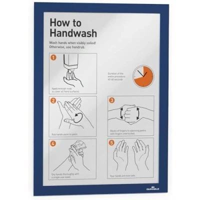 Durable DURAFRAME Self Adhesive Magnetic Frame A4 Format In Dark Blue Pack of 2 Frames Document for Professional Internal Signage