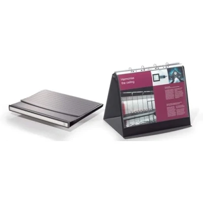 HIGH-QUALITY: High-quality and stylish table top flipchart presentation tool for using when presenting to customers AREAS OF APPLICATION: Created for a wide range of uses such as exhibitions, meetings, presentations, as well as training courses MATERIAL: The quality of this range is evident through the soft ribbed metallic grey PVC material DIMENSIONS: The presenter can be stored vertically to reduce shelf space and measures 360 high x 450 wide mm MADE IN GERMANY: Durable is one of the leading German brand manufacturers of office organisation and presentation equipment