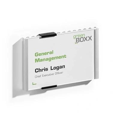 AmazonHIGH-QUALITY: The sign is made from a stable aluminium frame withan acrylic face place and an exchangeable cardboard inlay FIXINGS INCLUDED: The sign includes a mounting kit as well as drilling template and instructions for easy installation FREE DESIGN SOFTWARE: Templaces and be designed and downloaded for free from the Durable Website via our free to use DURAPRINT software AREAS OF APPLICATION: Perfect for clearly identifying rooms and locations in places such as offices, hotels, public buildings, retail, etc, DIMENSIONS: The sign measures 149 x 105,5mm to provide you with a clear and easy to read signage solution
