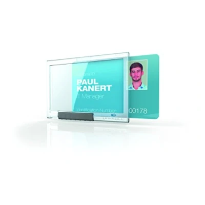 AmazonSTRONG: The security name badge is made from strong plastic to provide durability and extend the products life cycle SECURE: The separate compartments are ideal for protecting sensitive RFID cards and chipped cards EASY TO USE: The compartment has a separate slider that ensures that the card can be removed and replaced easily VERSATILE: The badge holder allows you to use it in either portrait or landscape formats depending on the type of card you want to use it with DIMENSIONS & PACK SIZE: Badges are in landscape format and measure 54 x 87mm and come as a pack of 10 name tags