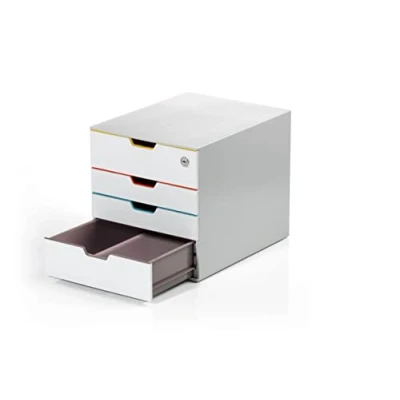 Durable VARICOLOR Mix 4 Lockable Drawer Unit Desktop Set with Colour Coded Draws Top Draw is Perfect for Storing Documents and Paper Work