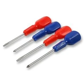 A basic 4pc screwdriver set with ergonomic handles Contents: 5 x 75mm Slot Screwdriver, 6 x 100mm Slot Screwdriver, PH1 x 75mm Screwdriver, PH2 x 100mm Screwdriver