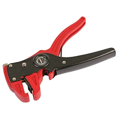 Dual-function wire stripper and cutter | Strips wires between: 0.5mm² - 2mm² Strips 8mm wide flat cable | Integrated wire cutter Adjustable stop for consistent wire lengths when stripping | Self-adjusting mechanism for different wire sizes Simple to use dial to change the blade pressure for different insulation thicknesses | Strong steel handle and blade Light weight and durable | Replaceable blades