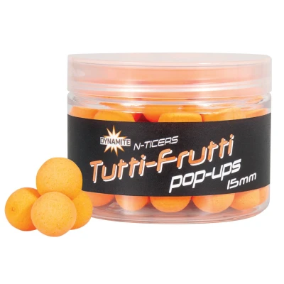 Dynamite Baits N-Ticers Tutti-Frutti Pop-ups - Choice of 12mm and 15mm! - Pop-ups - Brand: Dynamite Baits - Flavor: Tutti-Frutti - Color: Orange - Super Floating - High visibility (Hi-Vis) - Suitable for Ronnie- and Chod-rigs - Perfect for singles or as a hookbait over feed - Highly flavored for instant and long-lasting attraction The Dynamite Baits N-Ticers Pop-Ups are specially designed to stand out in all water conditions. With a Hi-Vis design and super buoyancy, they are ideal for Ronnie and Chod rigs. This Tutti-Frutti flavor provides instant and long-lasting attraction. Perfect for anglers who want confidence in their baits even during longer sessions. A proven choice for success!