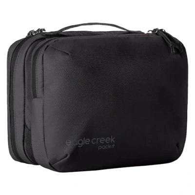 Hanging Travel Toiletry Bag - Designed with a durable hanging hook, eagle creek Tri-Fold Pack-It Toiletry Bag keeps grooming essentials organized and easily accessible anywhere MULTIPLE COMPARTMENTS - Featuring a padded interior with elastic pockets and secure zipper pockets, this bathroom organizer ensures neat storage for all your travel toiletry bag needs Water Resistant Toiletry Bag - Made from 1% recycled fabrics, this washable toiletry bag protects beauty products and toiletry bottles from spills and splashes EASY TO GRIP & TAKE: with a quick grip handle and easy-grip zippers, this durable kit is perfect for effortless storage and stress-free travel; a durable hanging hook provides convenient storage Adventure Travel Outfitters Since 1975: At Eagle Creek, we know a thing or two about traveling: we equip travelers with gear to go beyond the familiar and into the unknown