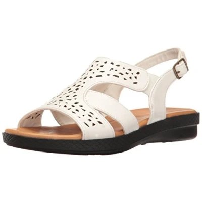 Easy Street Women's Bolt Flat Sandal, White, 7.5 Wide