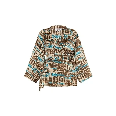 ebeeza Women's Wrap Blouse, Brown Multi coloured, S