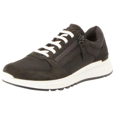A premium mix of textile and ECCO nubuck leather from our gold-rated tanneries Easy on and off with the elastic laces and side zip ECCO fluidform Direct Comfort Technology and a foot-fitted last for anatomical support, cushioning and flexibility Superb shock absorption and extra comfort with the ECCO SHOCK THRU technology in the midsole Durable grip, even on wet surfaces, with a long-lasting rubber outsole