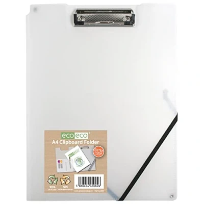 eco A4 50% Recycled Clear Folder with Inside and Back Storage Pocket, Clip Pen Holder eco069CL