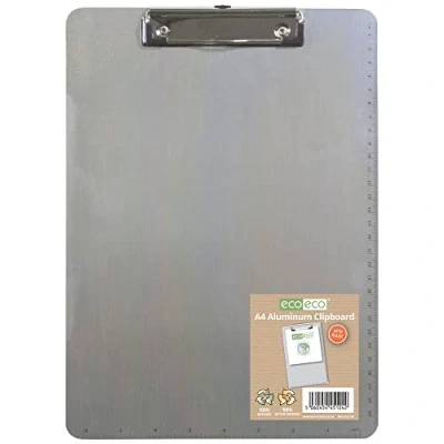 Strong A4 clipboard with metal spring clip, ideal for home, office and professional use Manufactured from tough, hard wearing Aluminium Responsibly sourced materials and responsibly produced Made from a green material Product and packaging both 100% recyclable