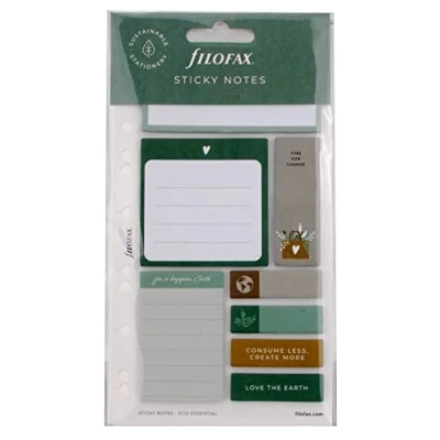 Part of the Filofax Eco Essential range, printed with soy ink 4 notepads and 4 different page marker tabs 20 sheets of fountain pen friendly paper per pad Compatible with Filofax Personal and A5 organisers and Clipbook Compatible with Filofax A5 & A4 refillable notebooks
