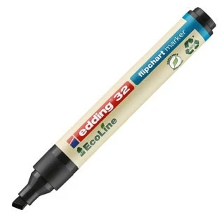 Use this Edding EcoLine 32 flipchart marker black for writing and marking on flipchart paper, presentation boards, cards and more. It has a chisel-shaped tip with a writing thickness of 1mm - 5mm. The ink has a neutral odour and does not penetrate the underlying sheets. Forgot to put the cap back on? Don't worry, this black flipchart marker won't dry out. Not even after a few weeks. The housing consists of 90% recycled plastic and the ink is easily refillable. This makes this marker an environmentally friendly choice for your presentation board.